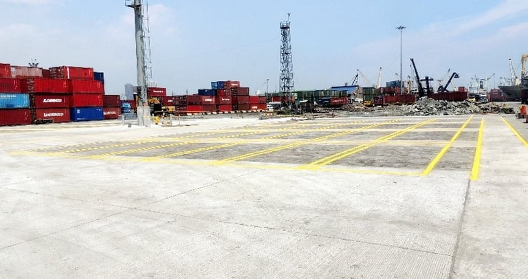Rehabilitation of container yard which includes paving works and fit-out for rubber-tyred gantries. The project includes water and drainage systems.